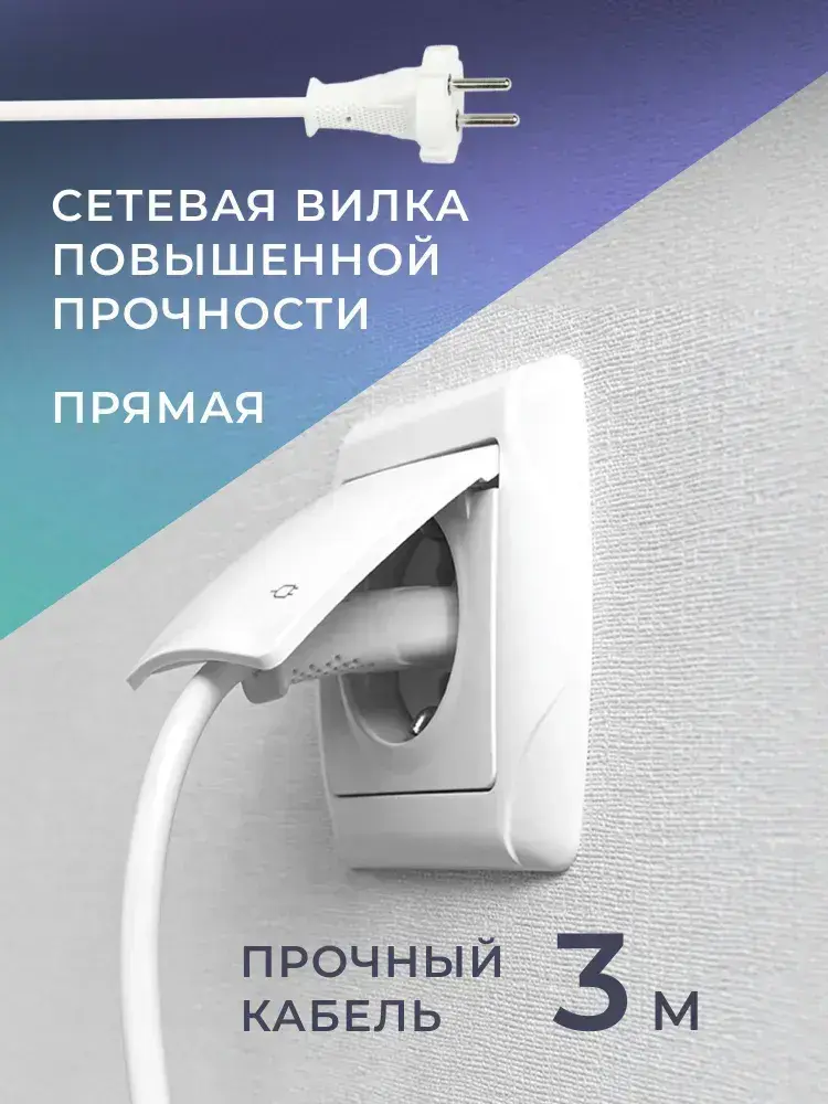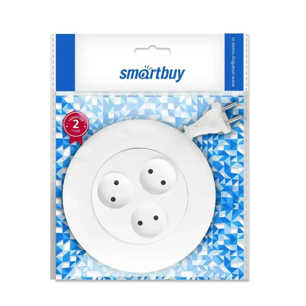 Удлинитель сетевой 3 розетки, 3 метра, круглый, белый