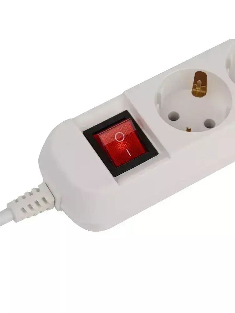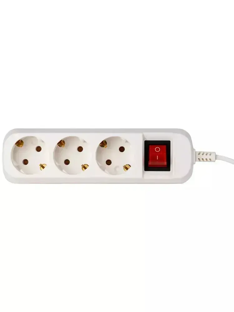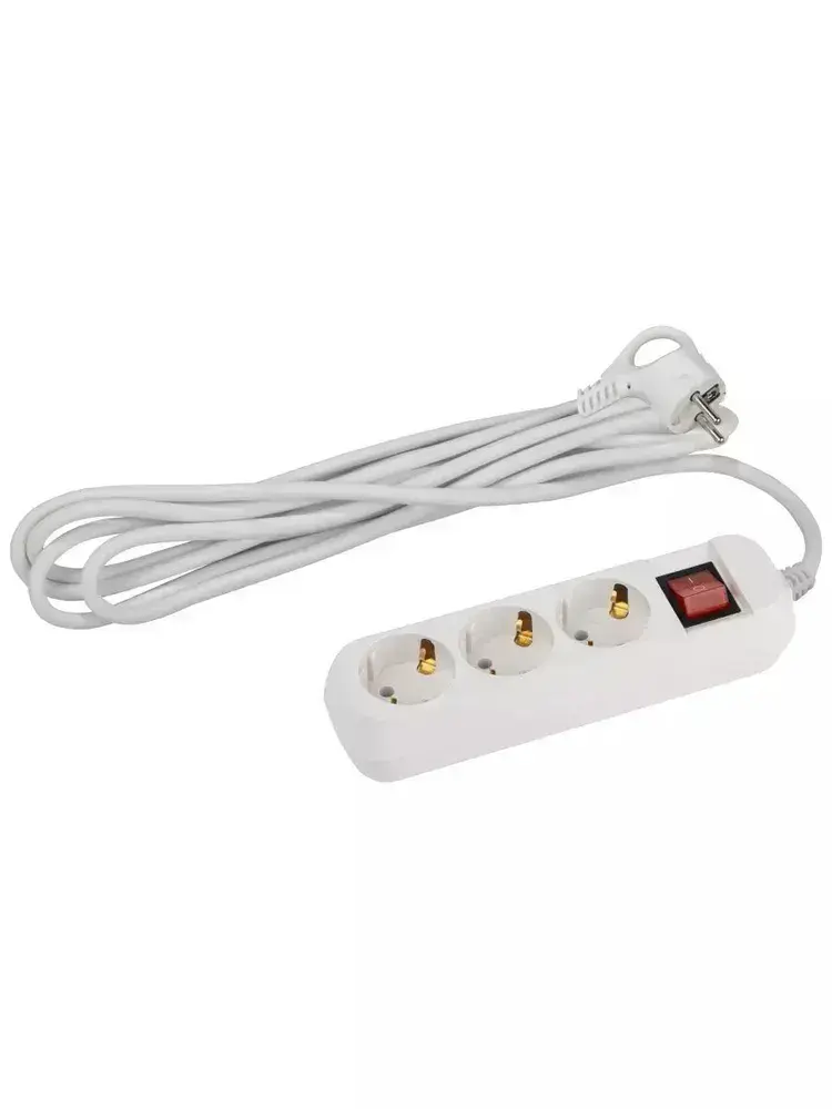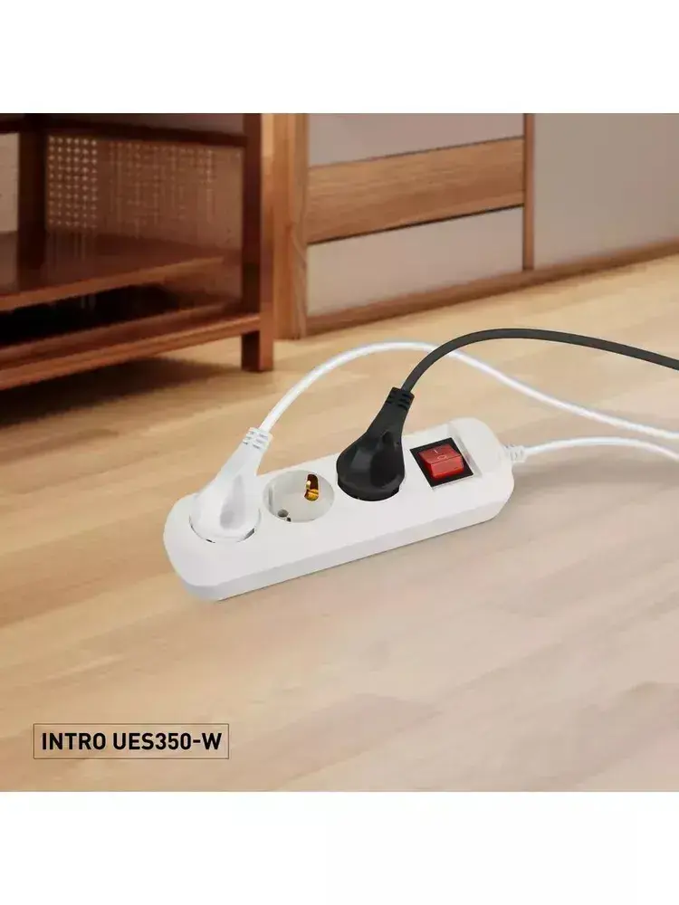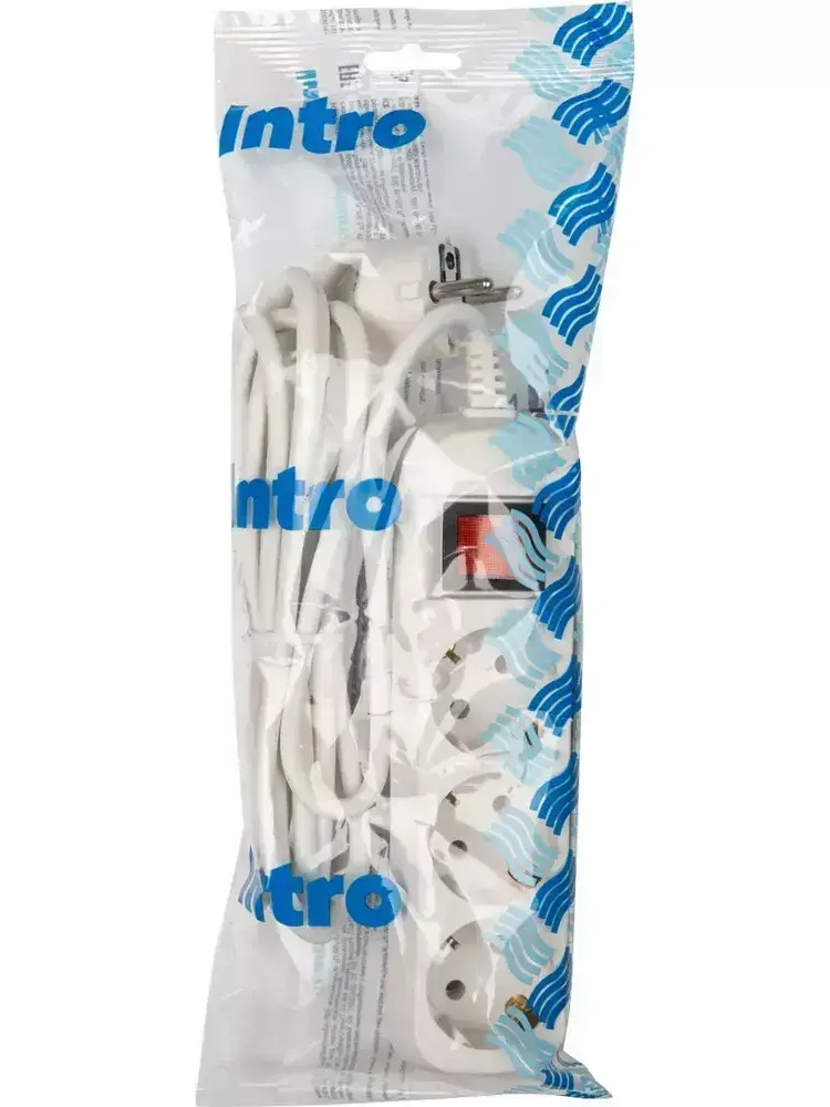 Удлинитель сетевой бытовой Intro UES350-W с заземлением и выключателем 3 розетки 5 м, 10А, ПВС 3х0,75мм2