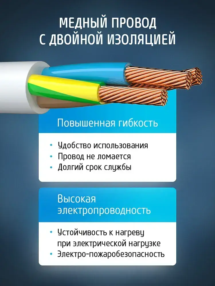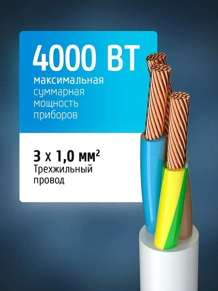 Удлинитель сетевой для розетки ФОТОН 16А 5м 3 розетки с заземлением белый, ГОСТ