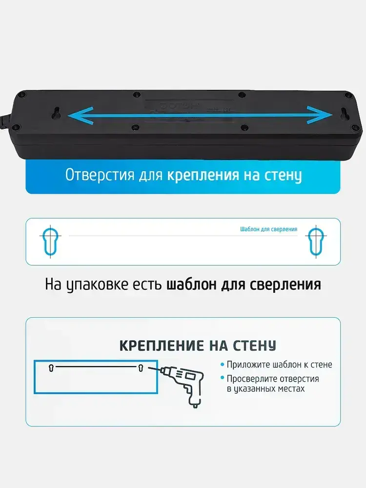 Удлинитель сетевой для розетки ФОТОН 16А 5м 5 розеток с выключателем с заземлением черный, ГОСТ