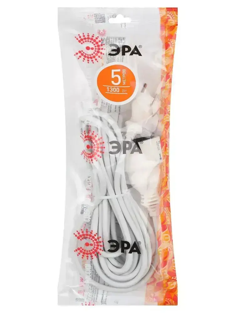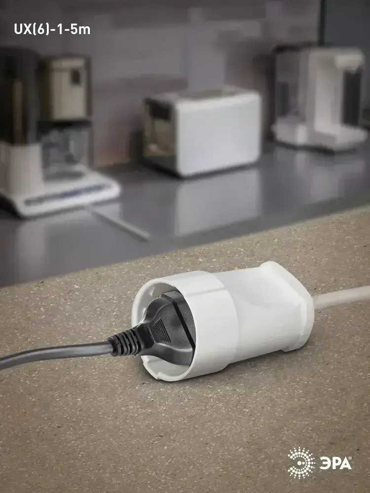 Удлинитель сетевой электрический без заземления UX(6)-1-5m ЭРА / Сетевой фильтр 1 розетка, 5м, 10А, 2x0,75мм2