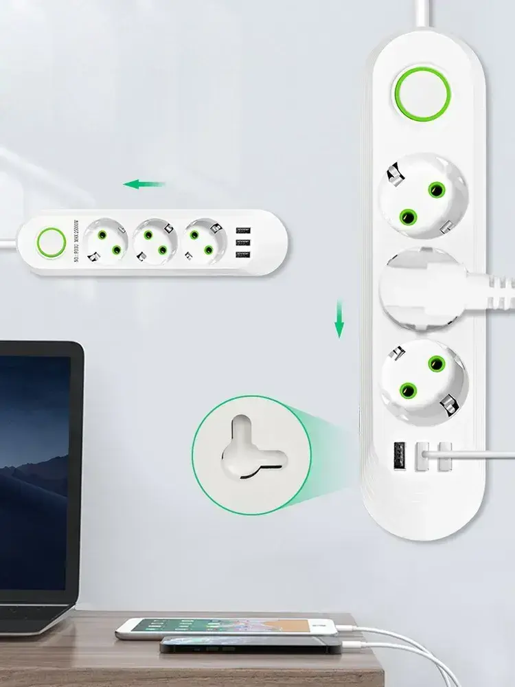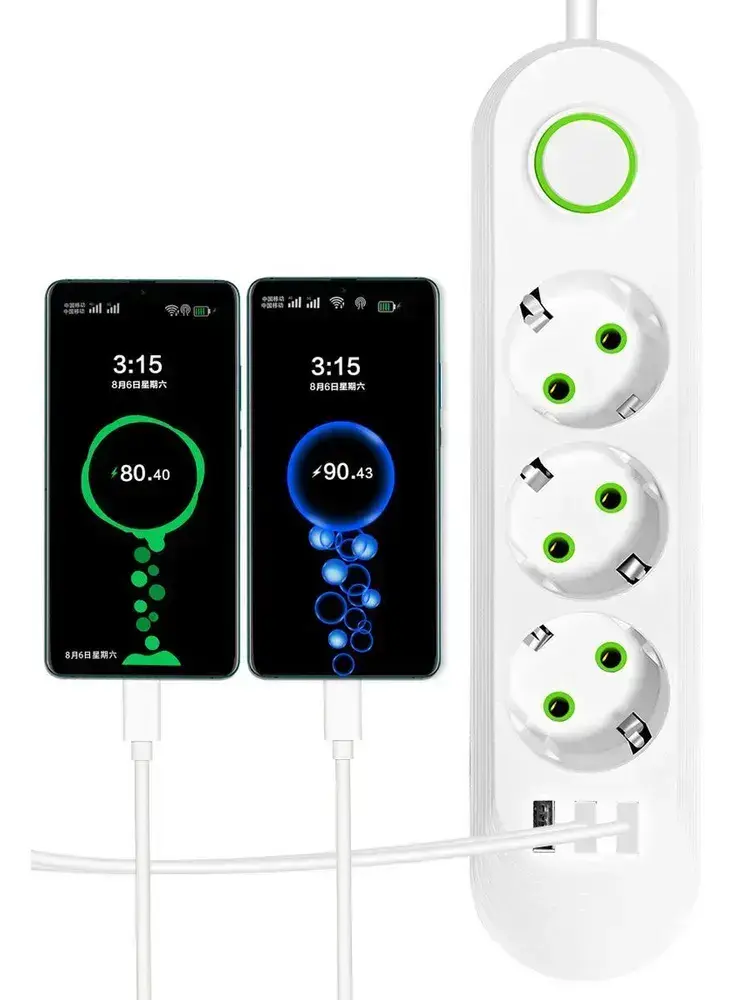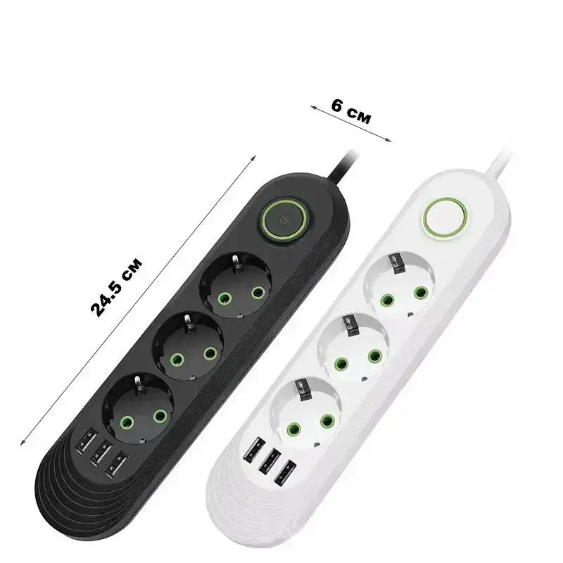 Удлинитель сетевой фильтр 10 метров 3 розетки 3 USB Белый