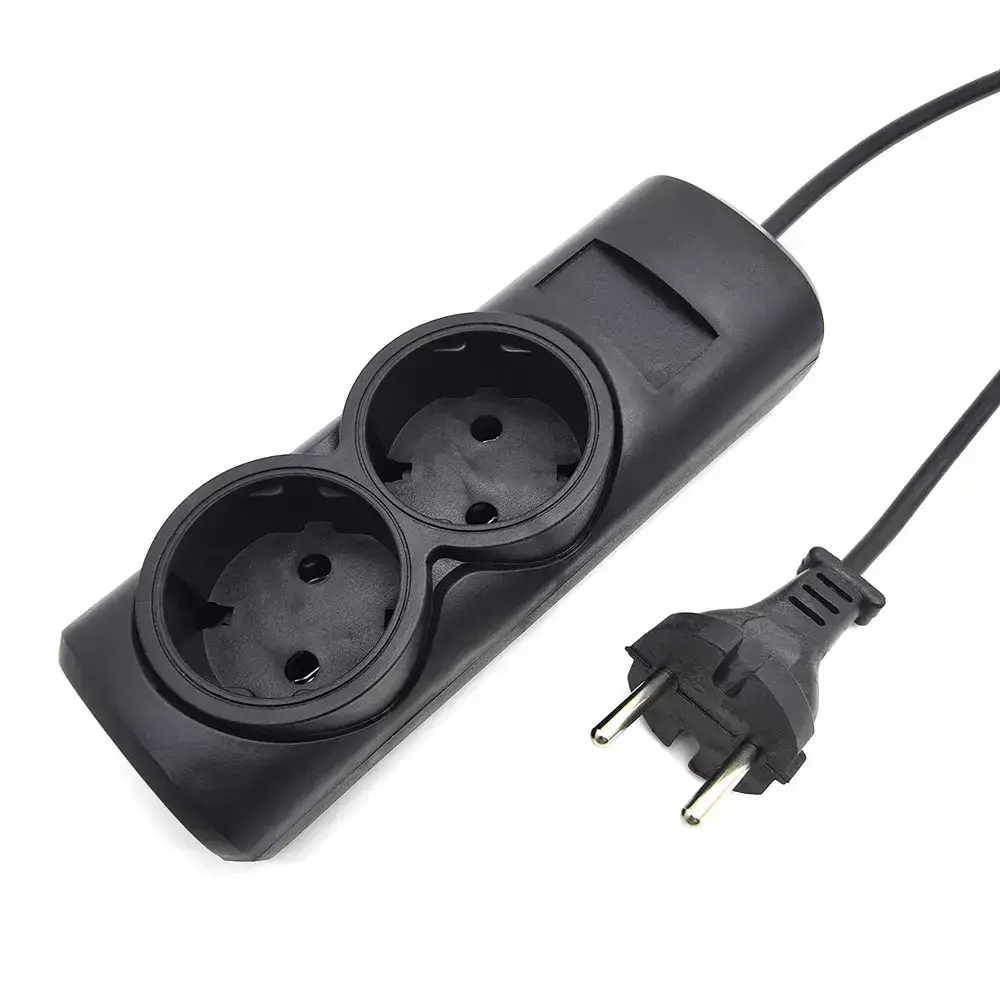 Удлинитель сетевой, ГОСТ, ПВС 2*0,75, 2 гнезда, 1.5м, сертифицированный, черный