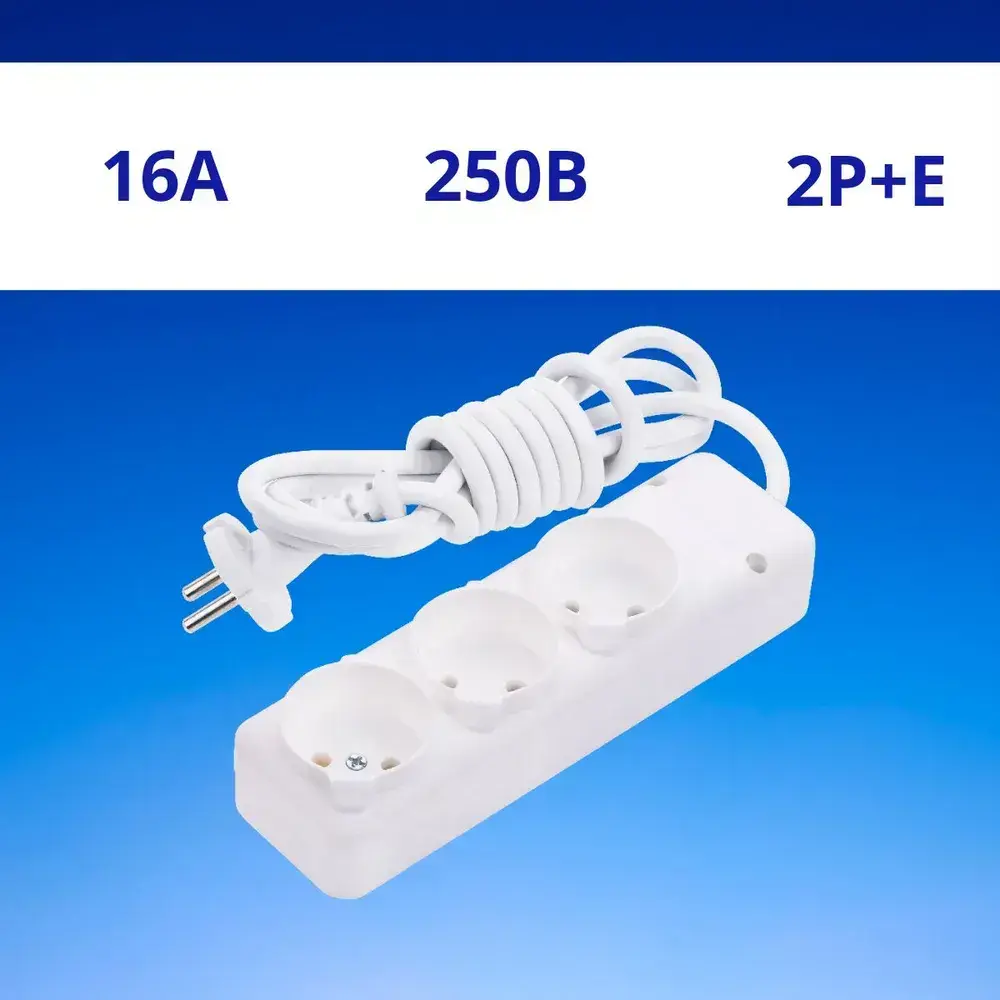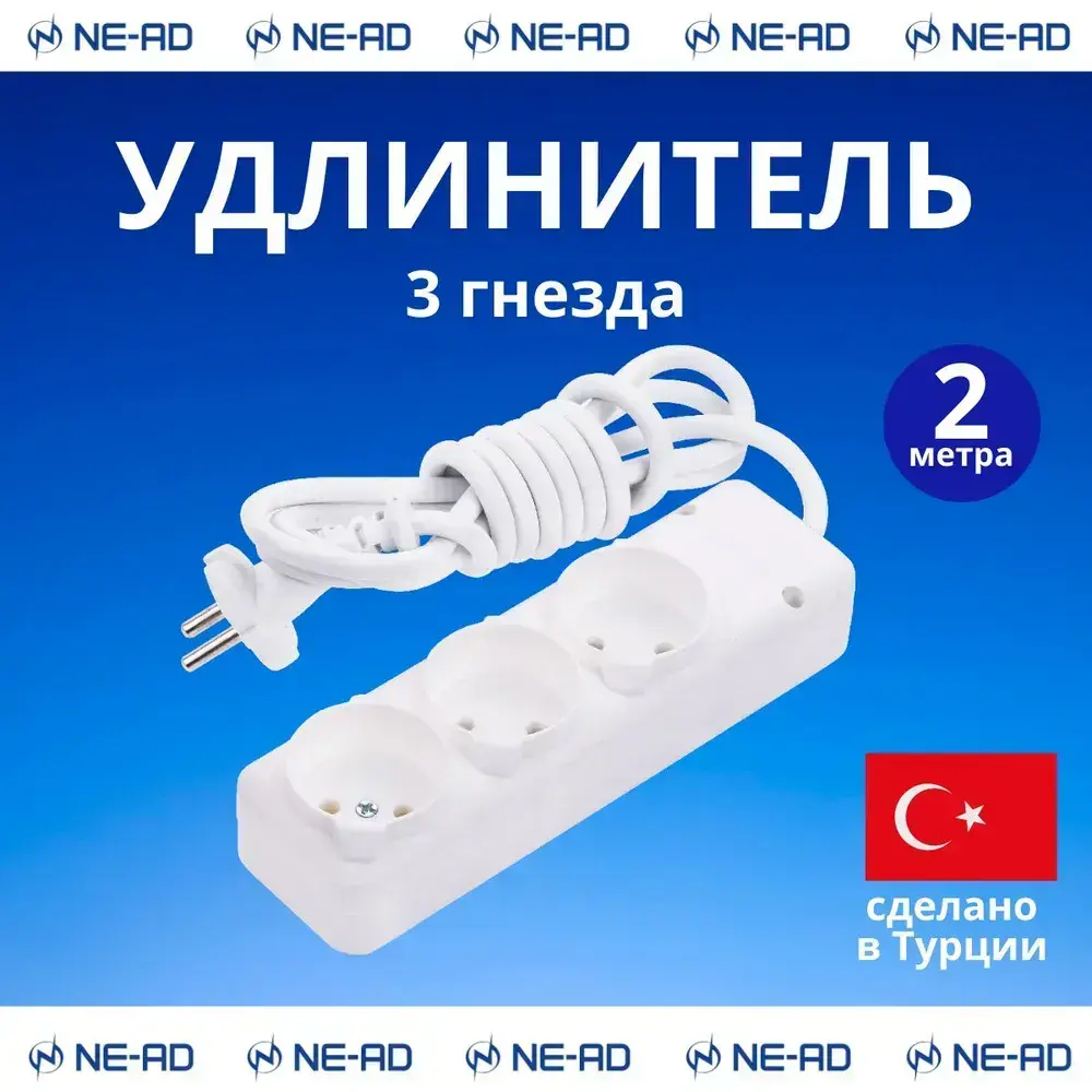 Удлинитель сетевой NE-AD без заземления, 3 гнезда, 2 метра