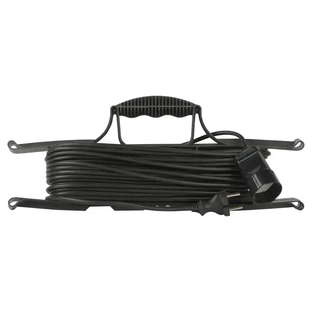 Удлинитель силовой 20м на рамке Intro UF1200 без заземления 1 розетка ПВС 2x0.75мм, строительный садовый для газонокосилки и триммера