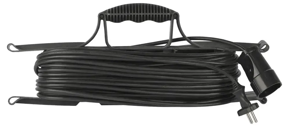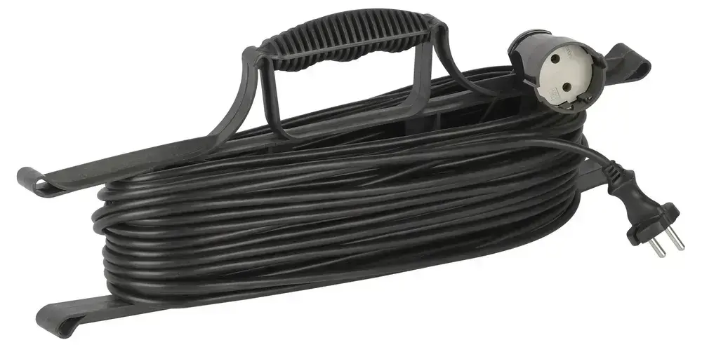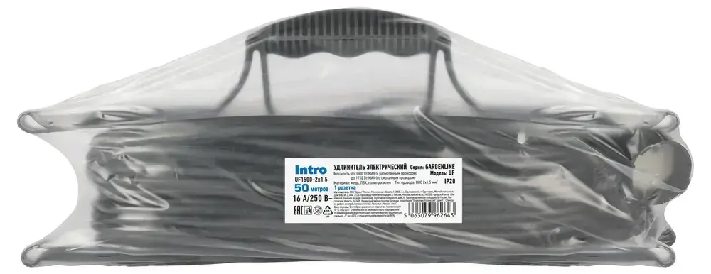 Удлинитель силовой 50м на рамке Intro UF1500 без заземления 1 розетка ПВС 2x1.5мм, строительный садовый для газонокосилки и триммера