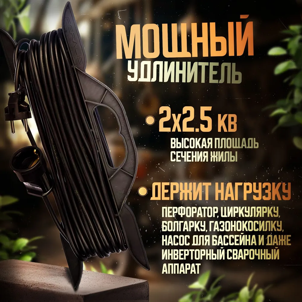 Удлинитель силовой для сварки уличный морозостойкий строительный 10 метров ПВС 2х2.5