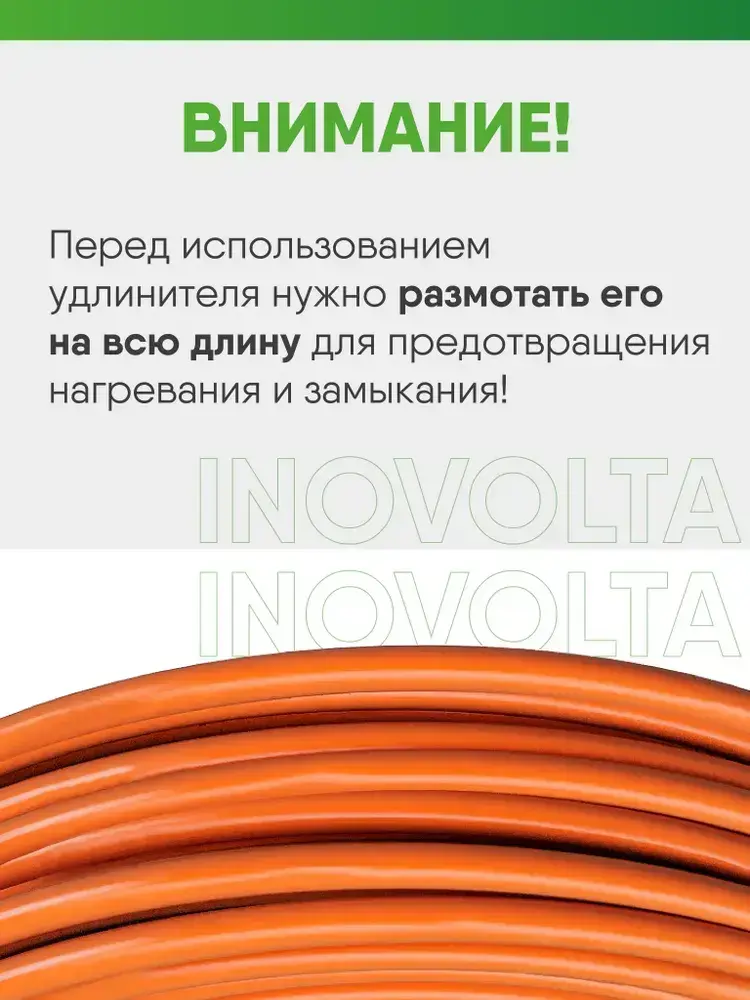 Удлинитель силовой INOVOLTA б/з ПВС 2х1,5 50м IP розетка оранж. шнур