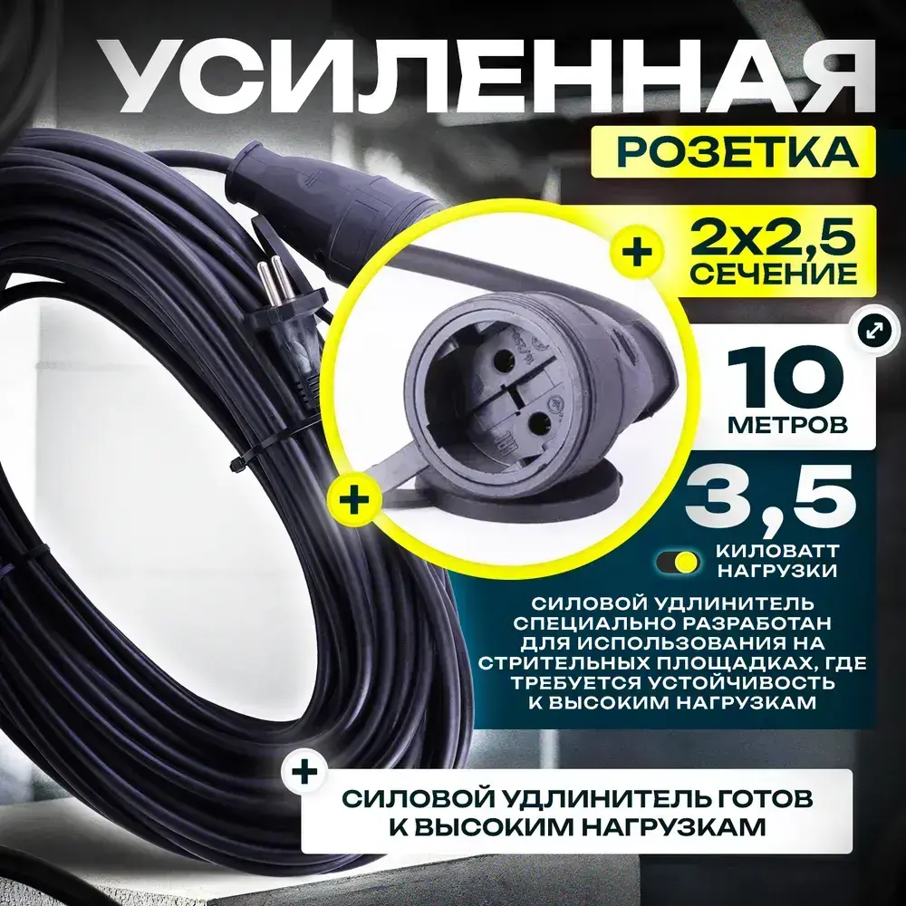 Удлинитель силовой КГтп-ХЛ 2х2.5 мм садовый строительный 10 метров
