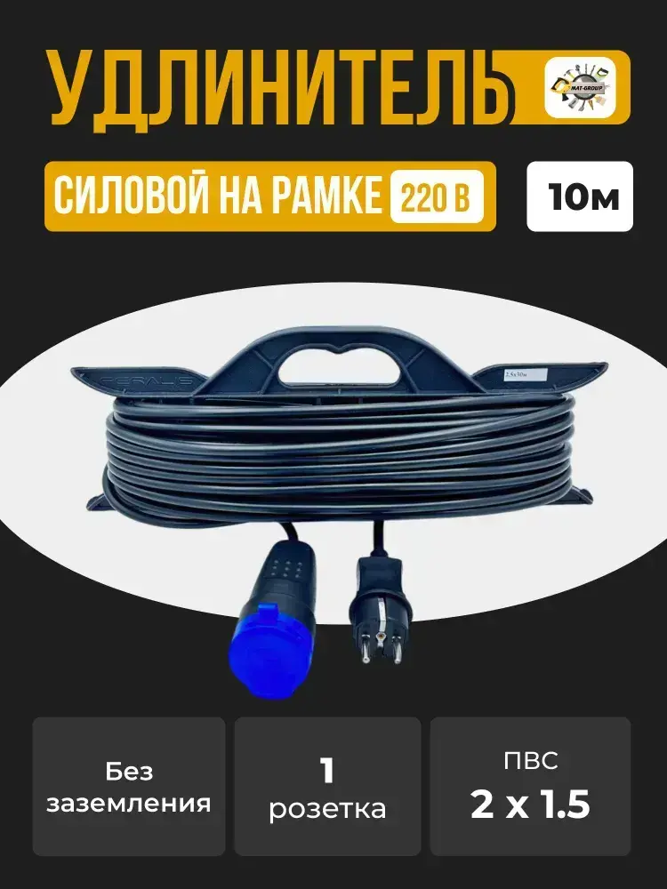 Удлинитель силовой на рамке ПВС 2x1.5 / с 1 (одним) гнездом -10м