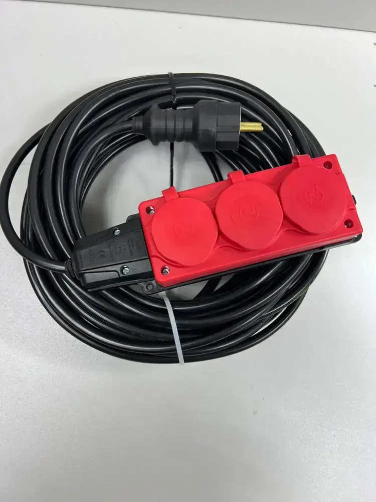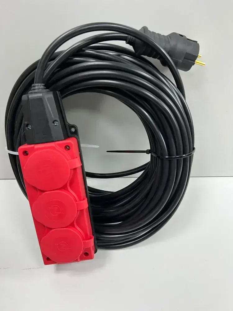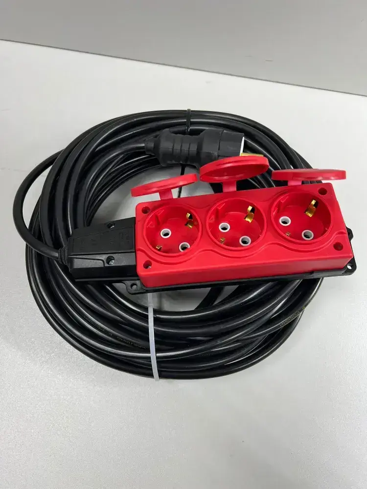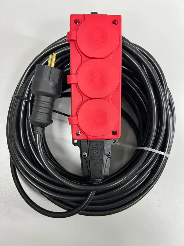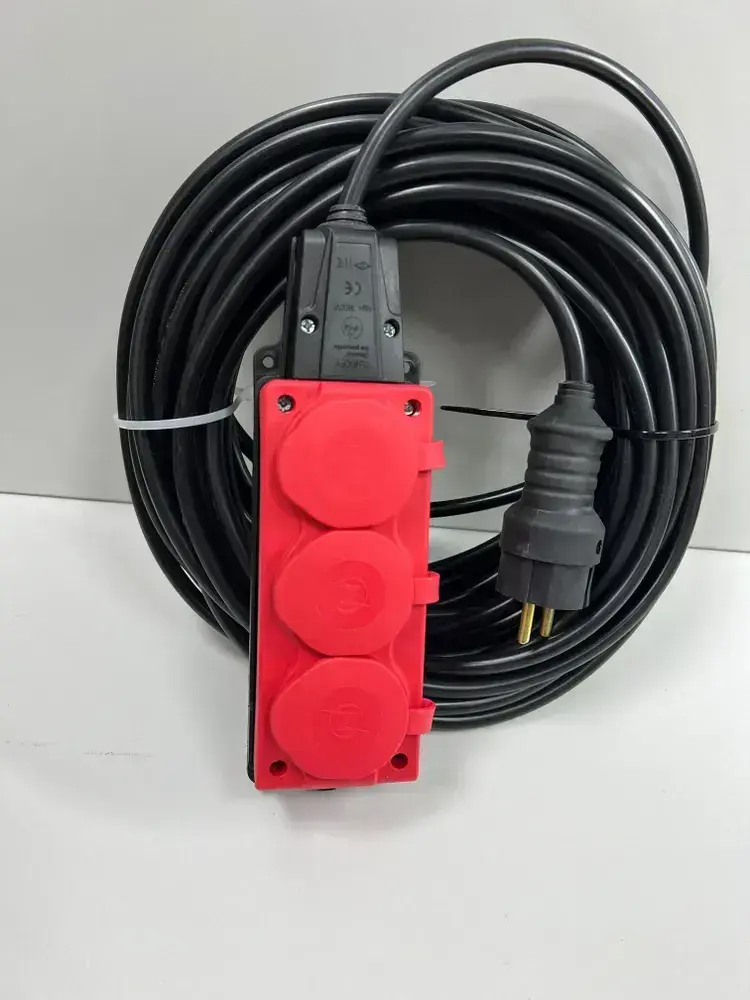 Удлинитель силовой строительный без заземление NE-AD 2x2,5-50m-IP54 в бухте электрический сетевой садовый уличный для газонокосилки 50 метров 3 розетки 16А