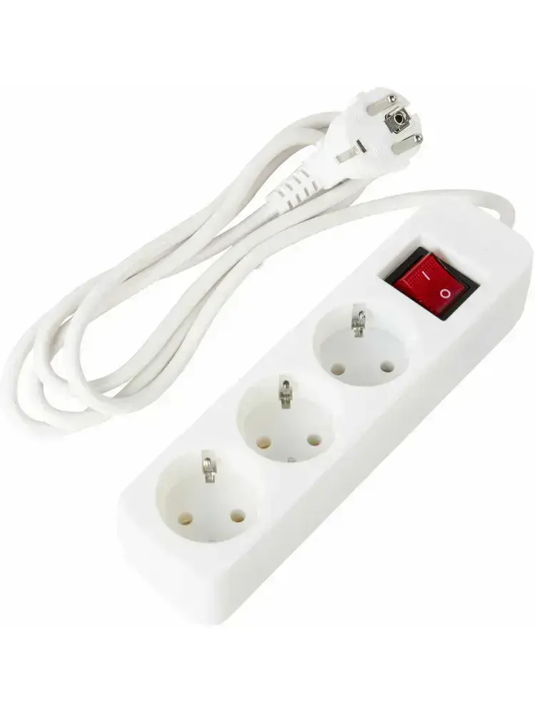 Удлинитель Sonnen Psw-183, 3 розетки c заземлением, выключатель 10 А, 1,8 м, белый