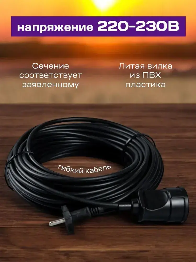 Удлинитель уличный силовой 30 метров ПВС 2*0,75 мм для газонокосилки и триммера
