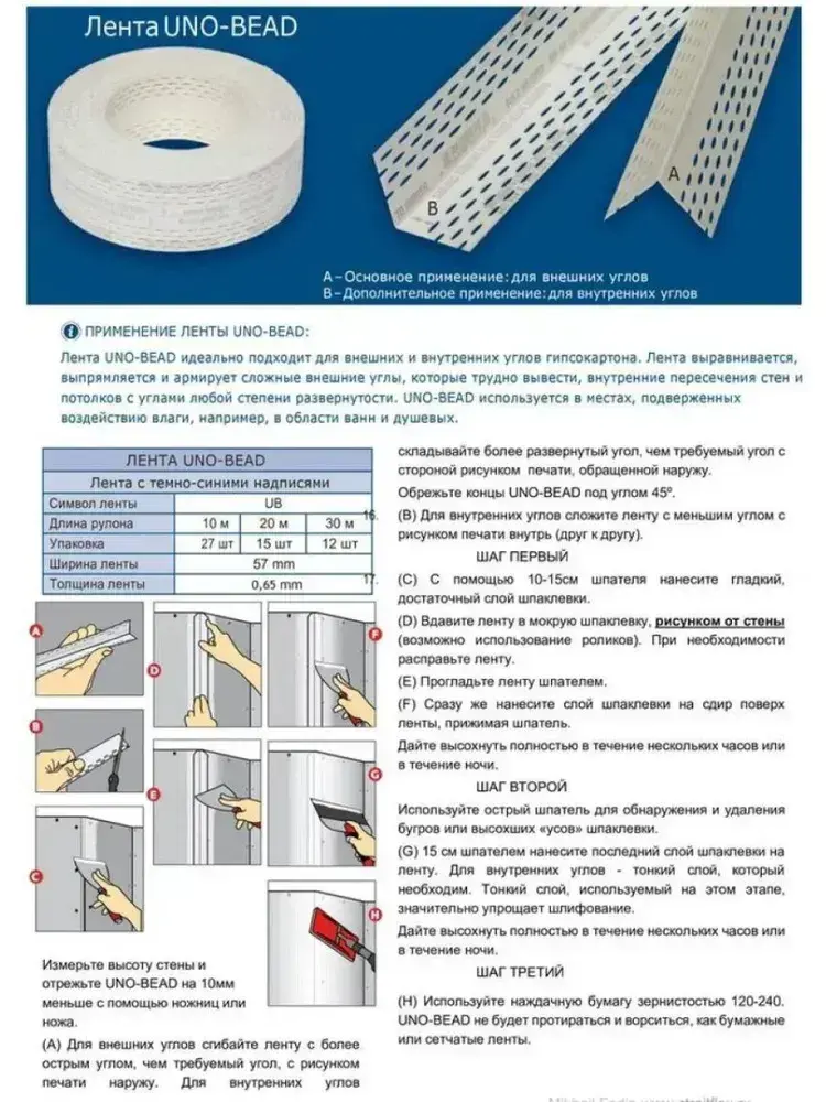 Углоформирующая армирующая лента Strait-Flex Uno-Bead, 57m * 20 м