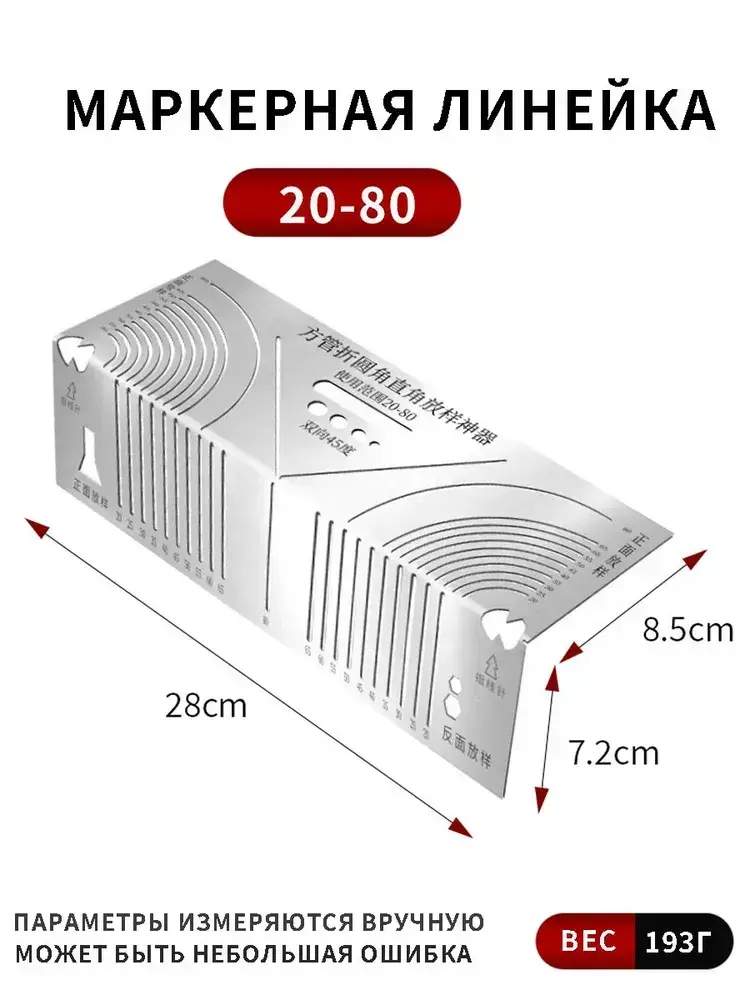 Угломер 280мм х 85мм, Нержавеющая сталь