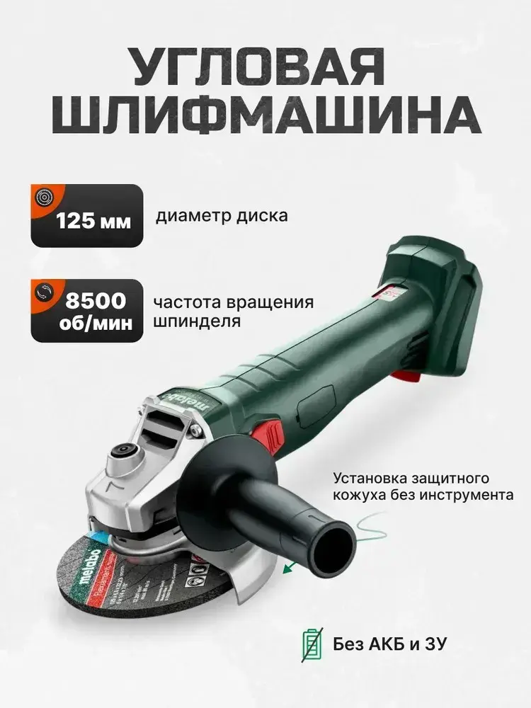 Углошлифовальная машина аккумуляторная METABO W 18 L 9-125 Quick, без АКБ и ЗУ (602249850)