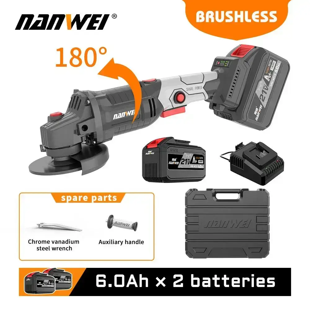 Угловая шлифовальная машина NANWEI 125 мм вращение на 180 градусов бесщеточная полировальная машин (6,0ahx2)