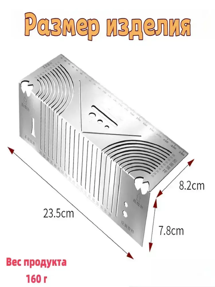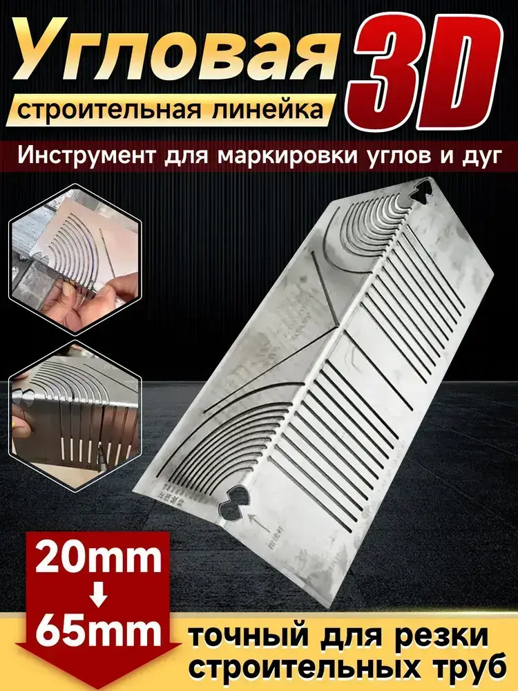 Угловая строительная линейка 3D / Угольник столярный разметочный / Линейка - угольник/20mm-65mm