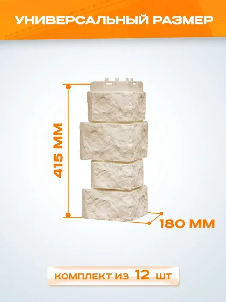 Угол наружный Grand Line Дикий камень Classic Молочный 0,380*180мм 0.68м2 1уп-12шт