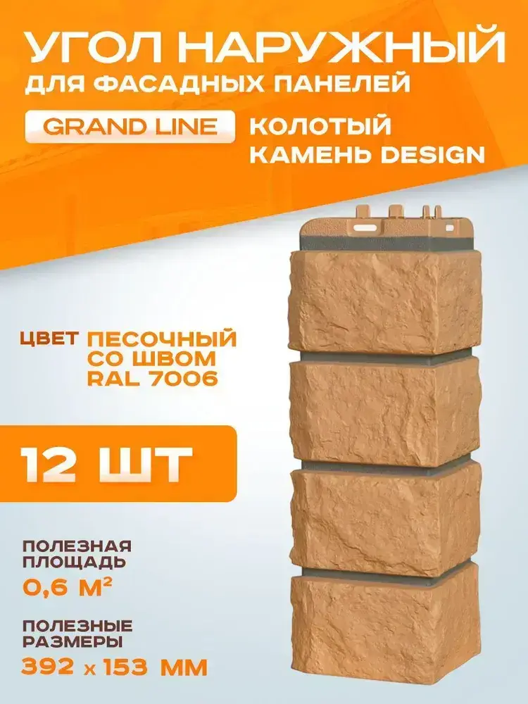Угол наружный Grand Line Колотый камень Design песочный 0.392*0.153мм 0.6м2 1уп-12шт