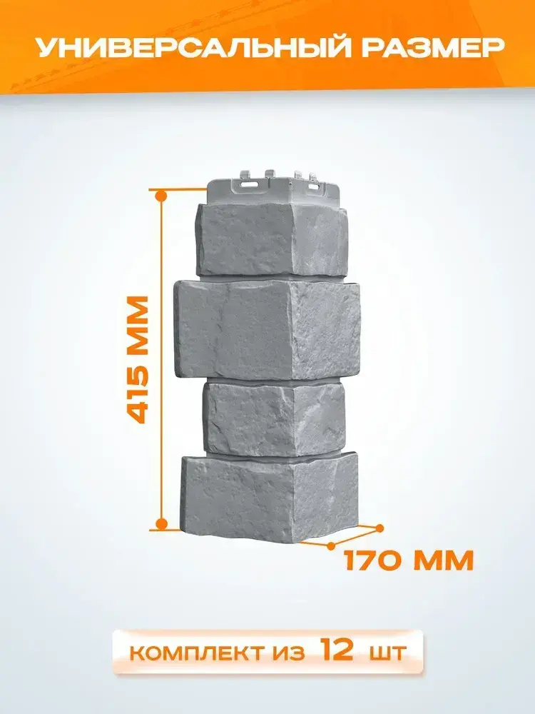 Угол наружный Grand Line Крупный камень Classic серый 0.390*0.170мм 0.66 м2 1уп-12шт