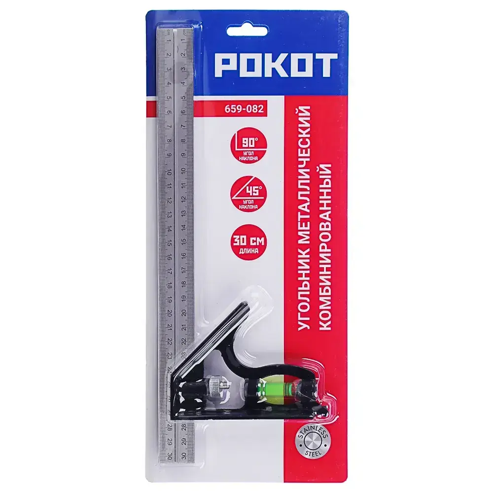 Угольник металлический РОКОТ комбинированный с уровнем 300мм/ Линейка/ Угломер