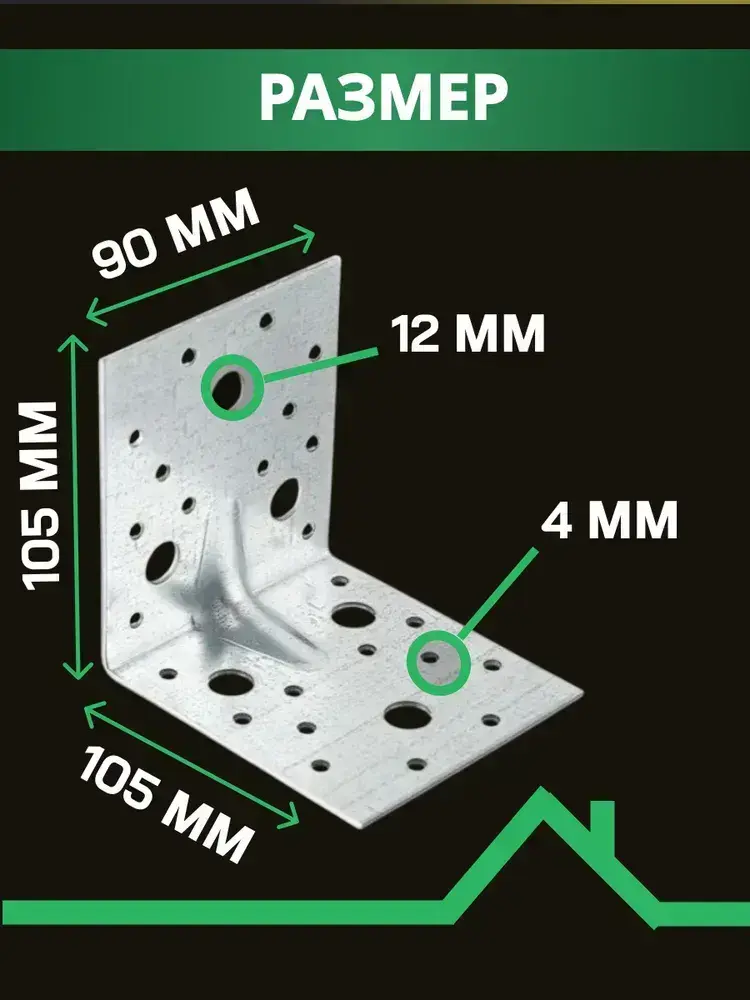 Уголок крепежный усиленный 105 х 105 х 90 мм (25 шт) перфорированный, строительный, металлический