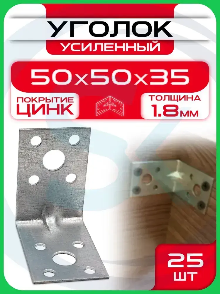 Уголок крепежный усиленный 50 х 50 х 35 мм, (25 шт)
