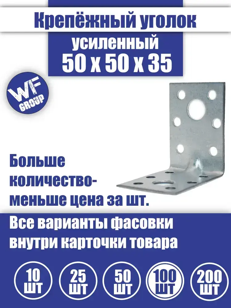 Уголок крепежный усиленный 50 x 50 x 35 мм, 100 шт.