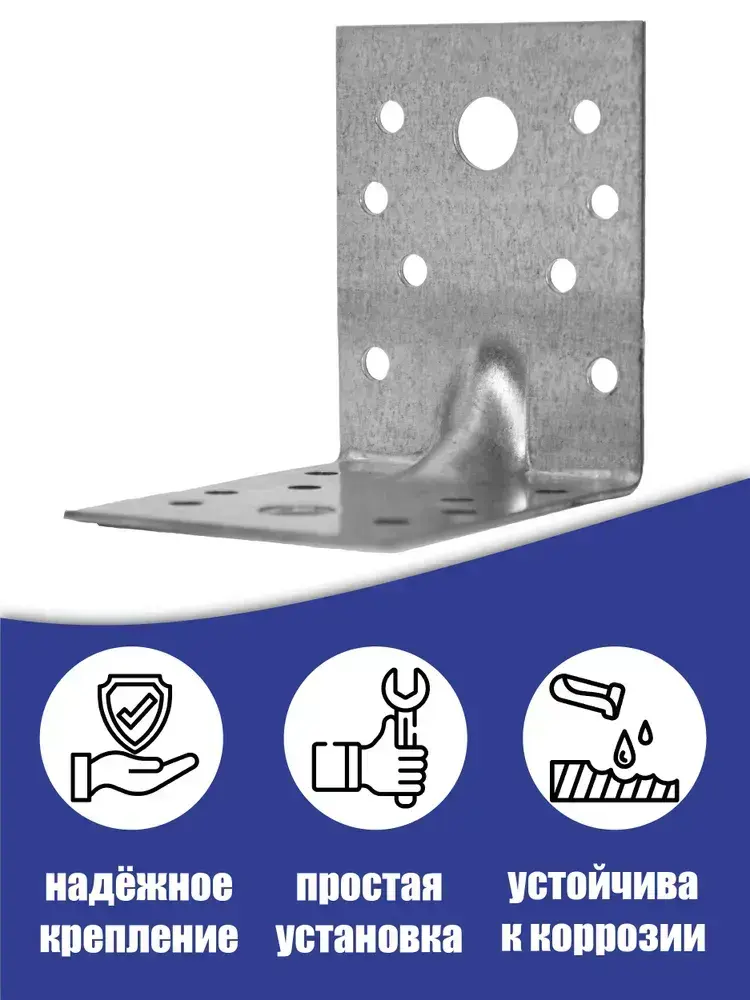 Уголок крепежный усиленный 70 x 70 x 55 мм, 50 шт.