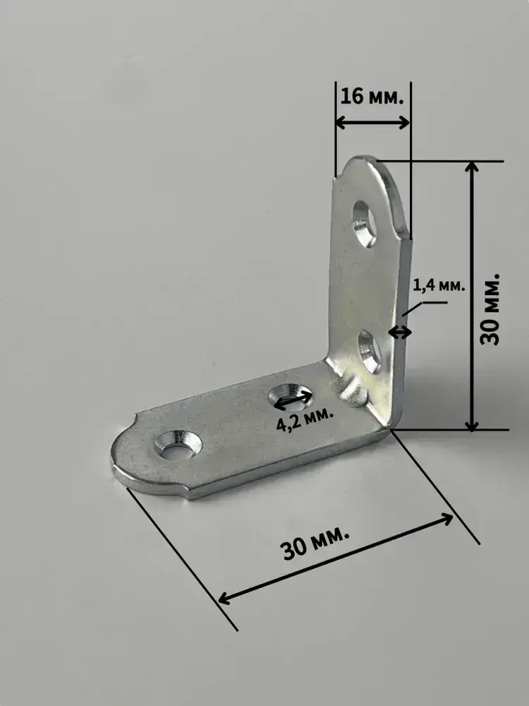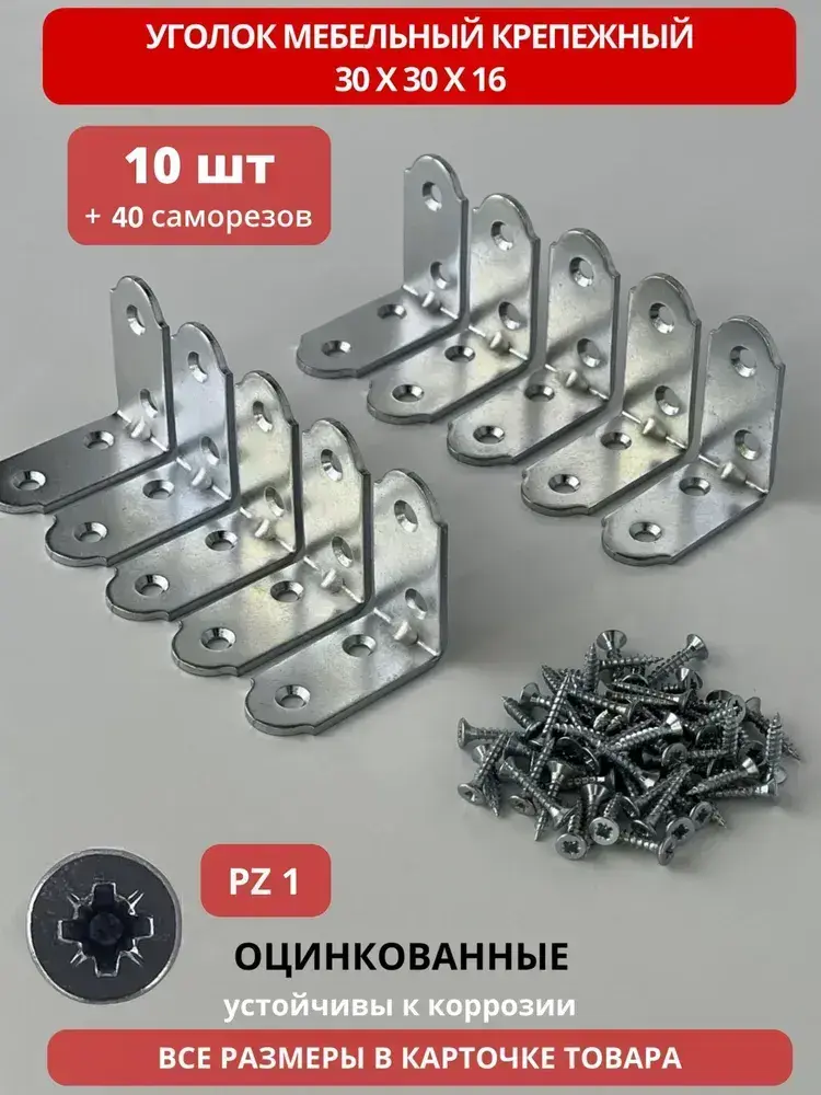 Уголок мебельный кронштейн 30х30 мм цинк (10 шт в упак) в комплекте с саморезами 3х16 (40 шт). Мебельный крепежный уголок с крепежом.