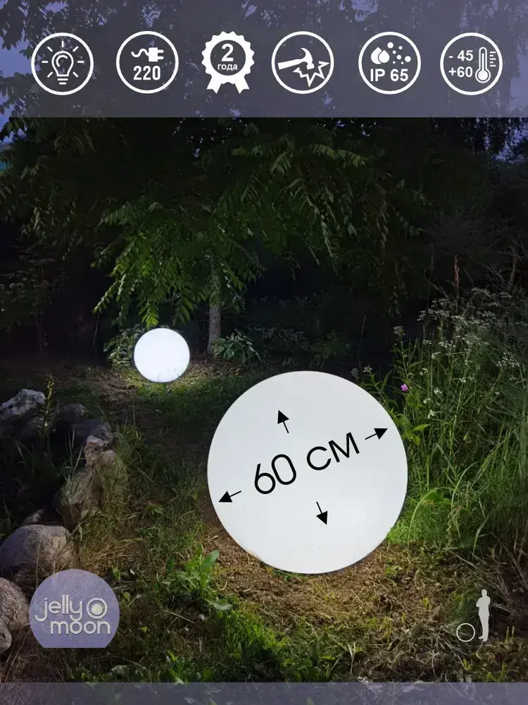 Уличный одноцветный светильник шар 60 см, от сети 220 В