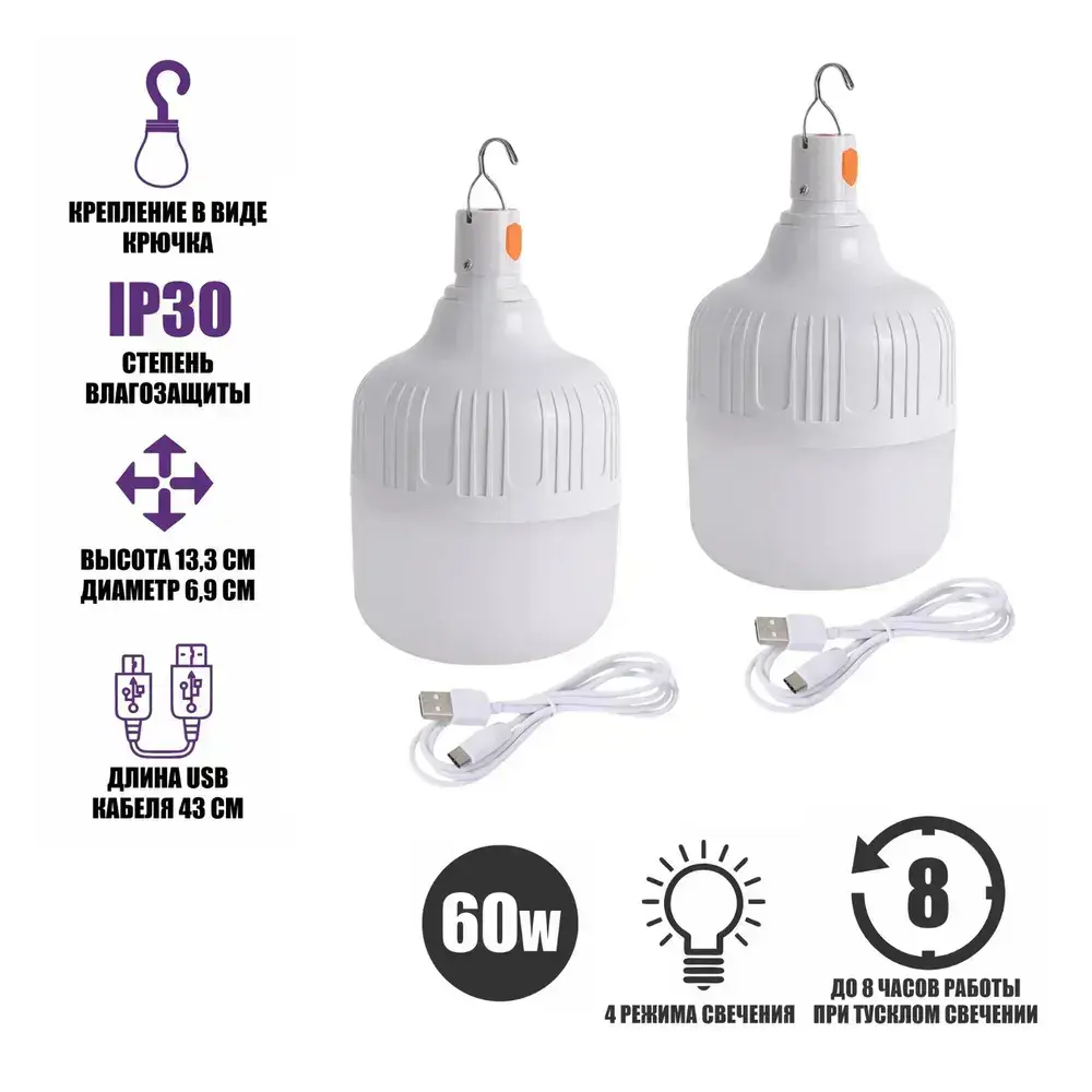 Уличный подвесной светильник аккумуляторный, 60W, 2 шт