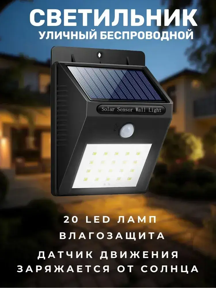Уличный светильник c датчиком движения фонарь на солнечной батарее