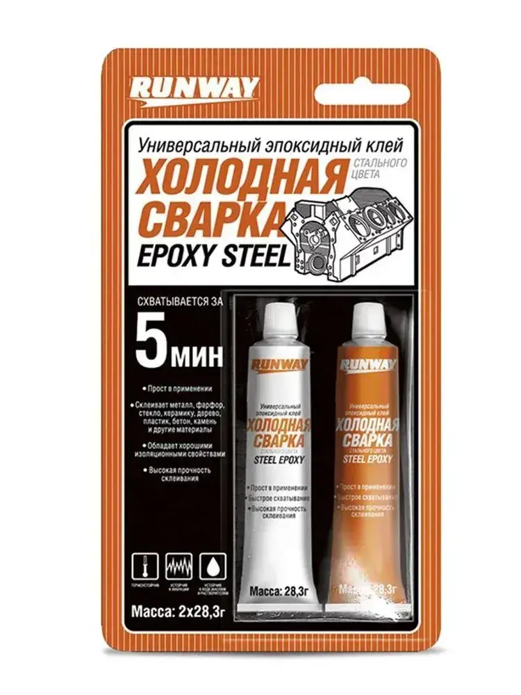 Универсальный эпоксидный клей ХОЛОДНАЯ СВАРКА стального цвета