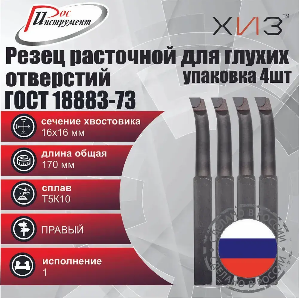 Упаковка резцов токарных расточных для глухих отверстий 4 ШТУКИ 16*16*170 Т5К10 ГОСТ 18883-73