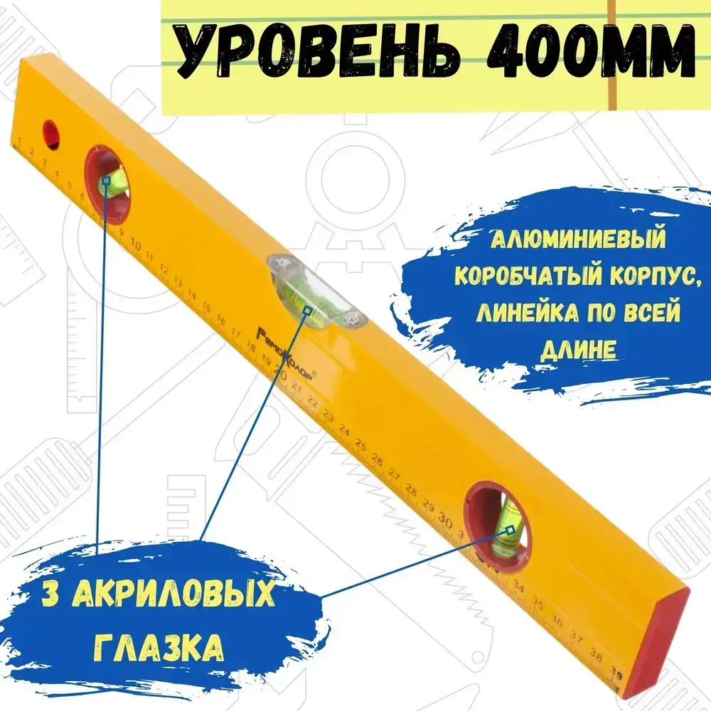 Уровень алюминиев "Yellow", 3 глазка, линейка, 400мм, (шт)