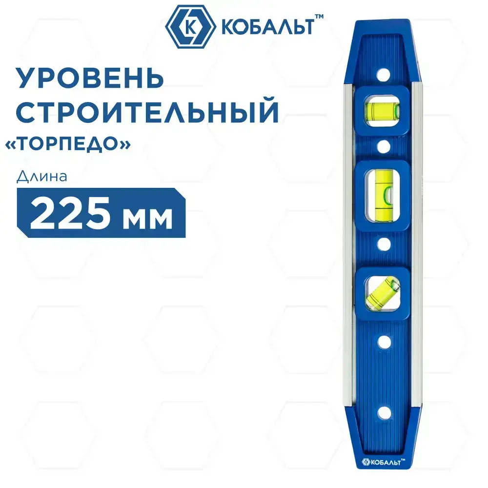 Уровень строительный КОБАЛЬТ 225 мм, Торпедо, 3 глазка, магнитный
