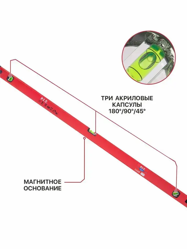Уровень строительный магнитный P.I.T. (1200мм, 3 капсулы, коробчатый, 1мм/м)