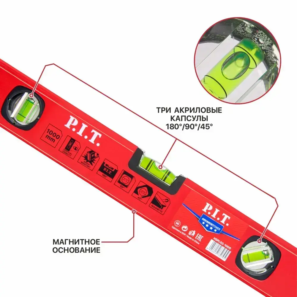 Уровень строительный магнитный P.I.T. (400мм, 3 капсулы, коробчатый, 1мм/м)