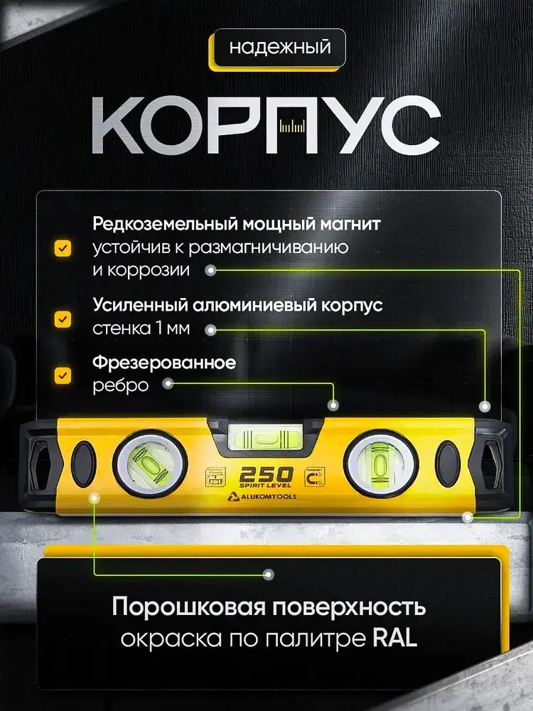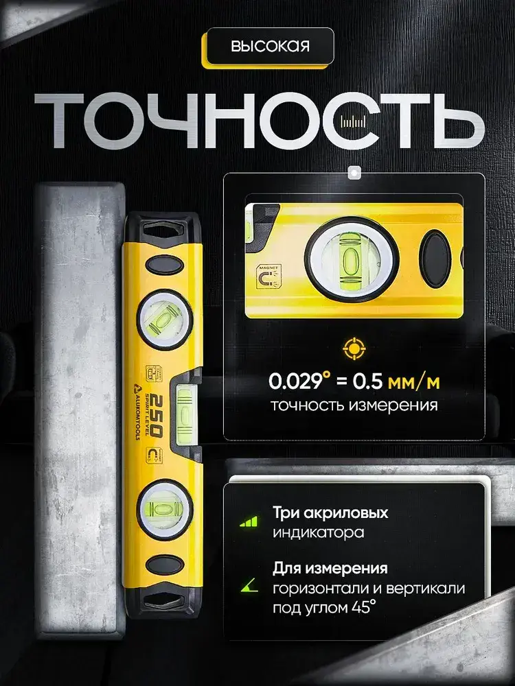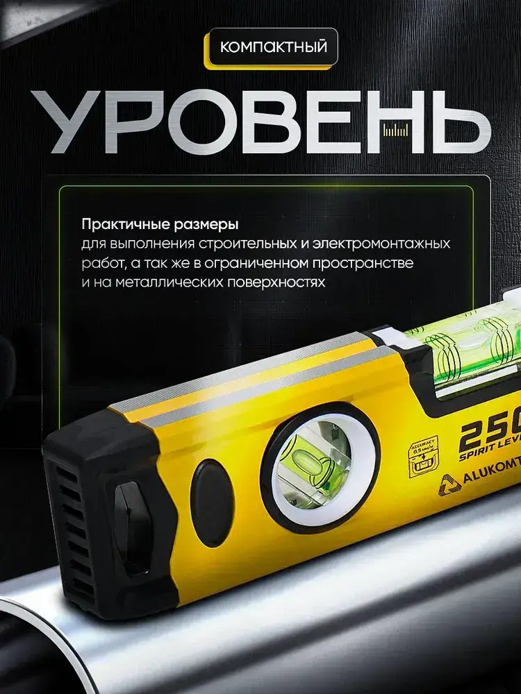 Уровень строительный магнитный усиленный "Торпедо" 250 мм