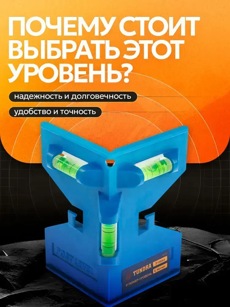 Уровень угловой магнитный / уровень строительный, Тундра, 3 глазка