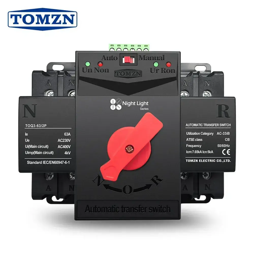 Устройство автоматического ввода резерва TOMZN TOQ3-63/2P АВР на 63А однофазное чёрное
