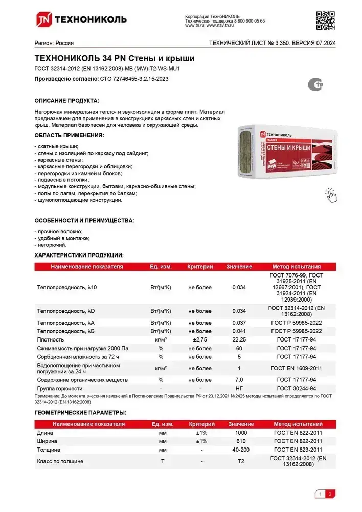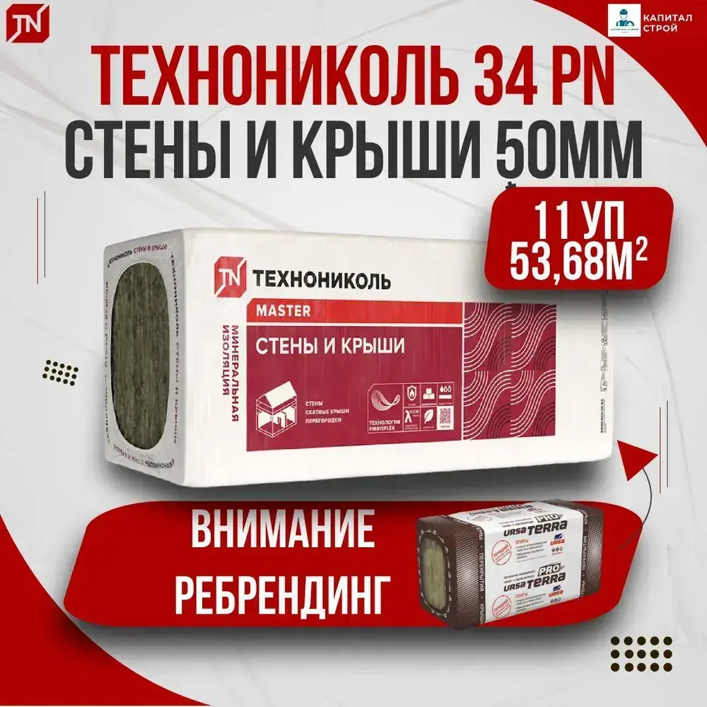 Утеплитель в плитах 53.68 м2 (11 упаковок) минеральная вата 50мм URSA Terra 34 PN PRO для стен, кровли, перекрытий