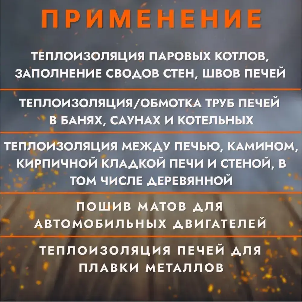 Вата каолиновая огнеупорная МКРВ-200, 1000х700х20мм, Войлок муллитокремнеземистый, одеяло огнеупорное, теплоизоляция для печей, труб, котлов, каминов