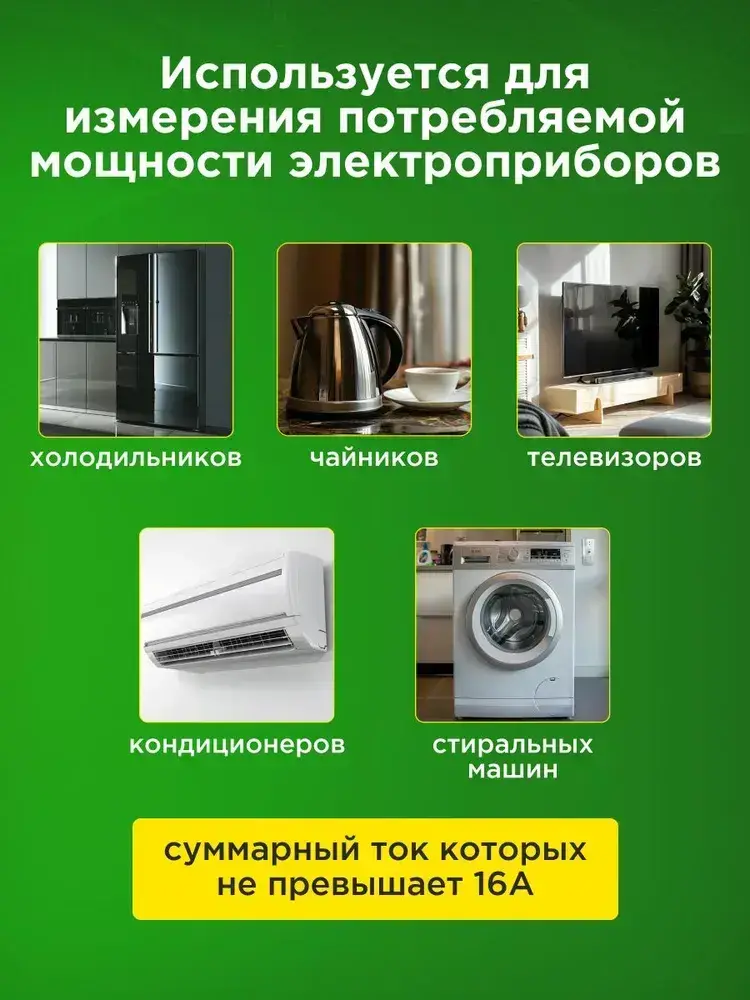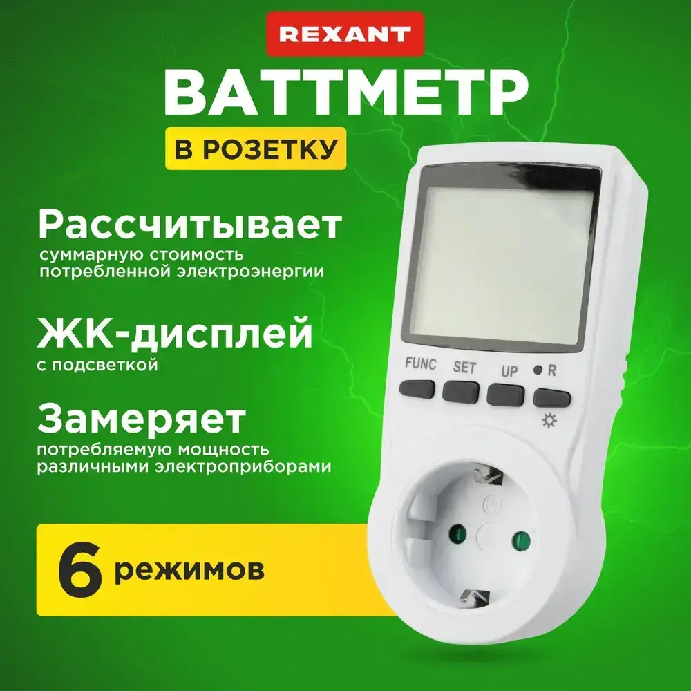 Ваттметр цифровой, измеритель мощности в розетку 3600 Вт 16А REXANT
