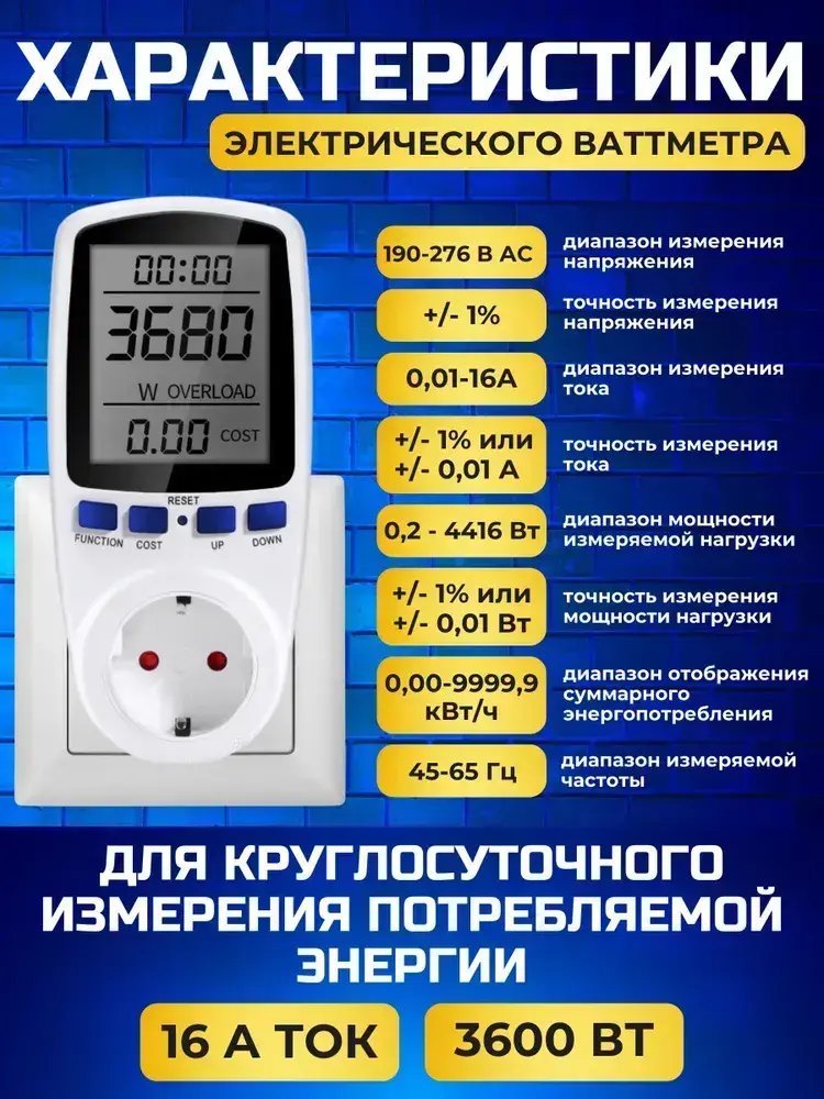Ваттметр цифровой в розетку для измерения мощности. Счетчик электроэнергии