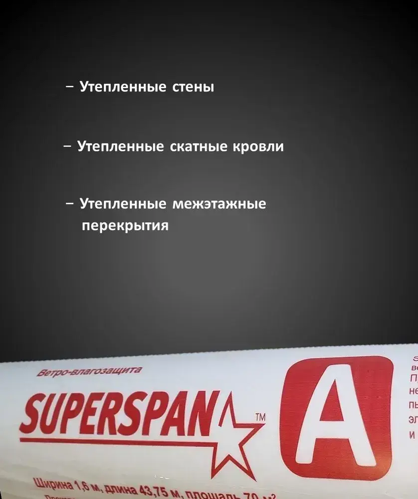Ветрозащита SUPERSPAN A (70 кв.м.) для стен и кровли / Мембрана кровельная