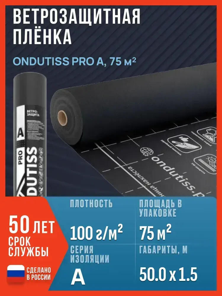 Ветрозащитная мембрана ONDUTISS PRO A, 75 м2 / Ветро-влагозащитная мембрана Ондутис PRO A
