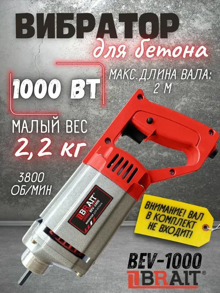 Вибратор для бетона BRAIT BEV-1000 (1000 Вт, 3800 об/мин, металлический корпус) / силовая техника и оборудование
